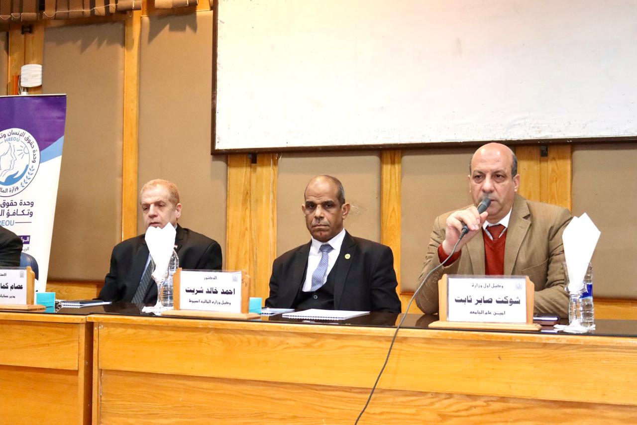 افتتح أعمال الورشة الأستاذ صابر شوكت أمين عام جامعة اسيوط الذي أكد أن جامعة اسيوط برئاسة الدكتور أحمد المنشاوي ترحب بالتعاون مع كافة مؤسسات الدولة لما يساهم في رفعة المجتمع وتقدمه وأن الجامعة ترحب بوفد المجلس القومي لحقوق ووزارة المالية في هذه الورشة.