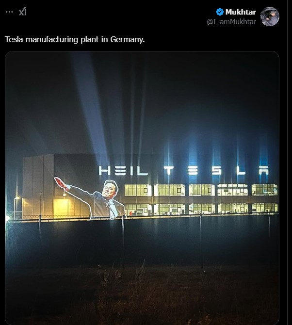 عاد الجدل مجددًا حول حركة “تحية اليد” التي قام بها إيلون ماسك، والتي شبهها البعض بالتحية النازية، وذلك بعد تداول صورة على مواقع التواصل الاجتماعي تظهر واجهة مصنع تسلا في برلين مضاءة بعرض صوري.