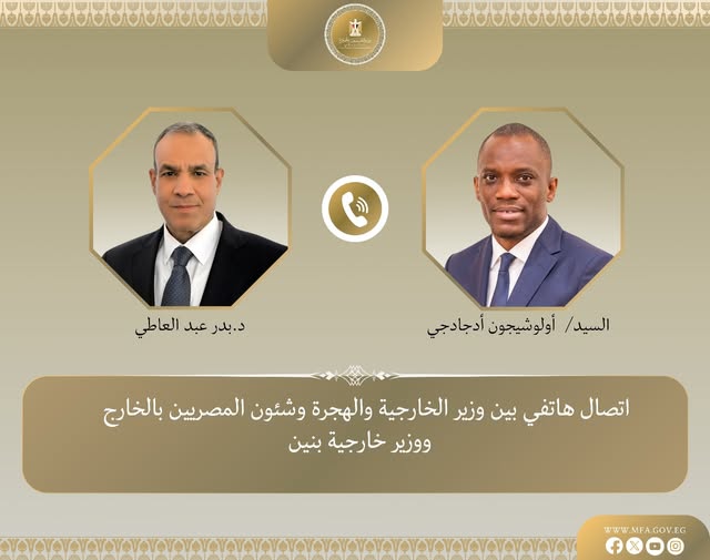 قدم وزير الخارجية والهجرة، الدكتور بدر عبد العاطي، خلال اتصال هاتفي مع وزير خارجية جمهورية بنين، أولوشيجون أدجادجي، التعزية في ضحايا الهجوم الإرهابي الغاشم على القوات البنينية في النقطة الحدودية مع النيجر وبوركينافاسو، مؤكدًا على تضامن مصر حكومةً وشعبًا مع جمهورية بنين في مكافحة الأعمال الارهابية.