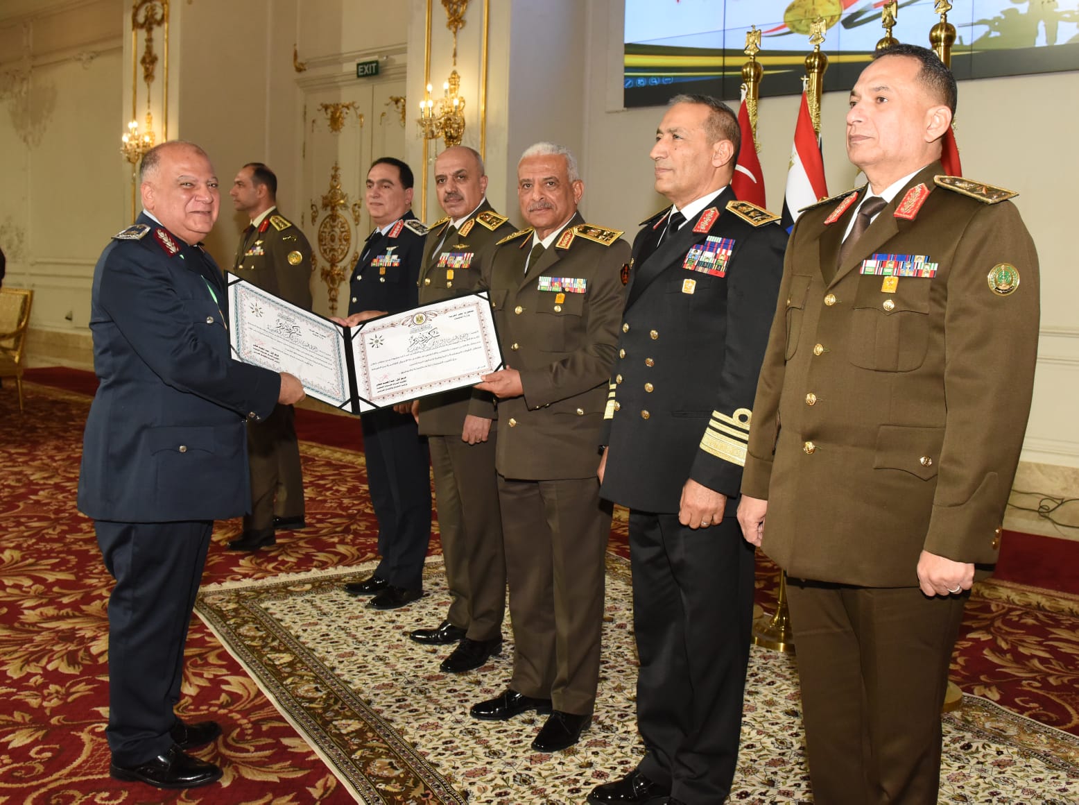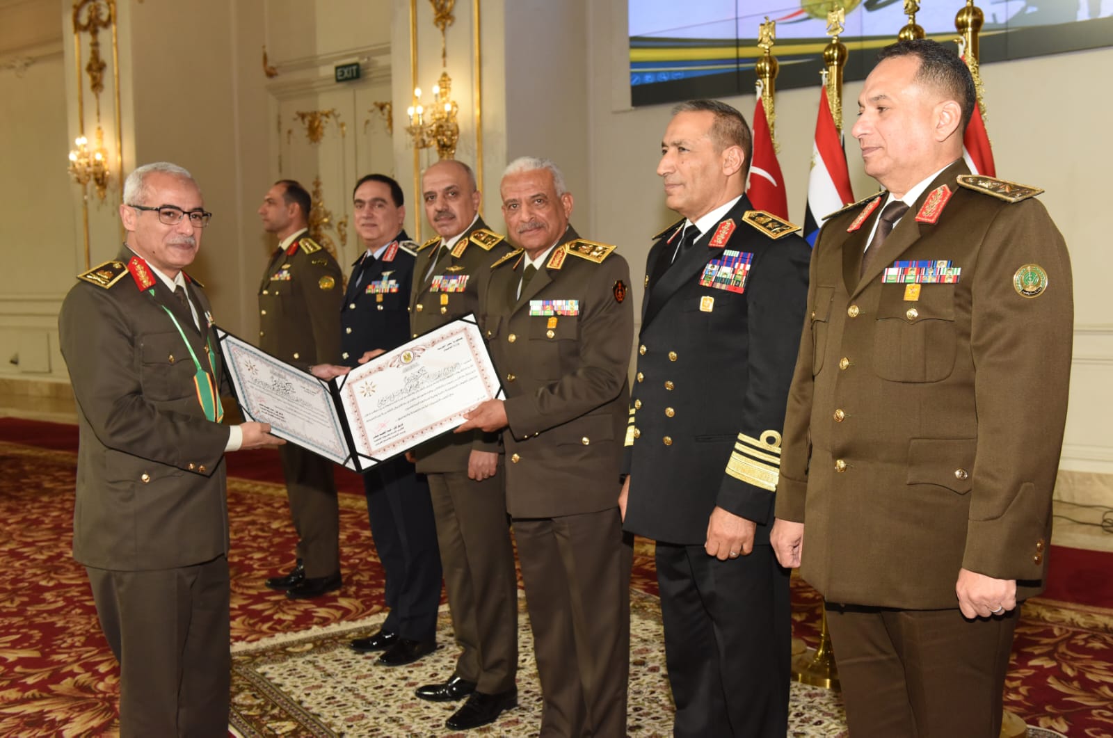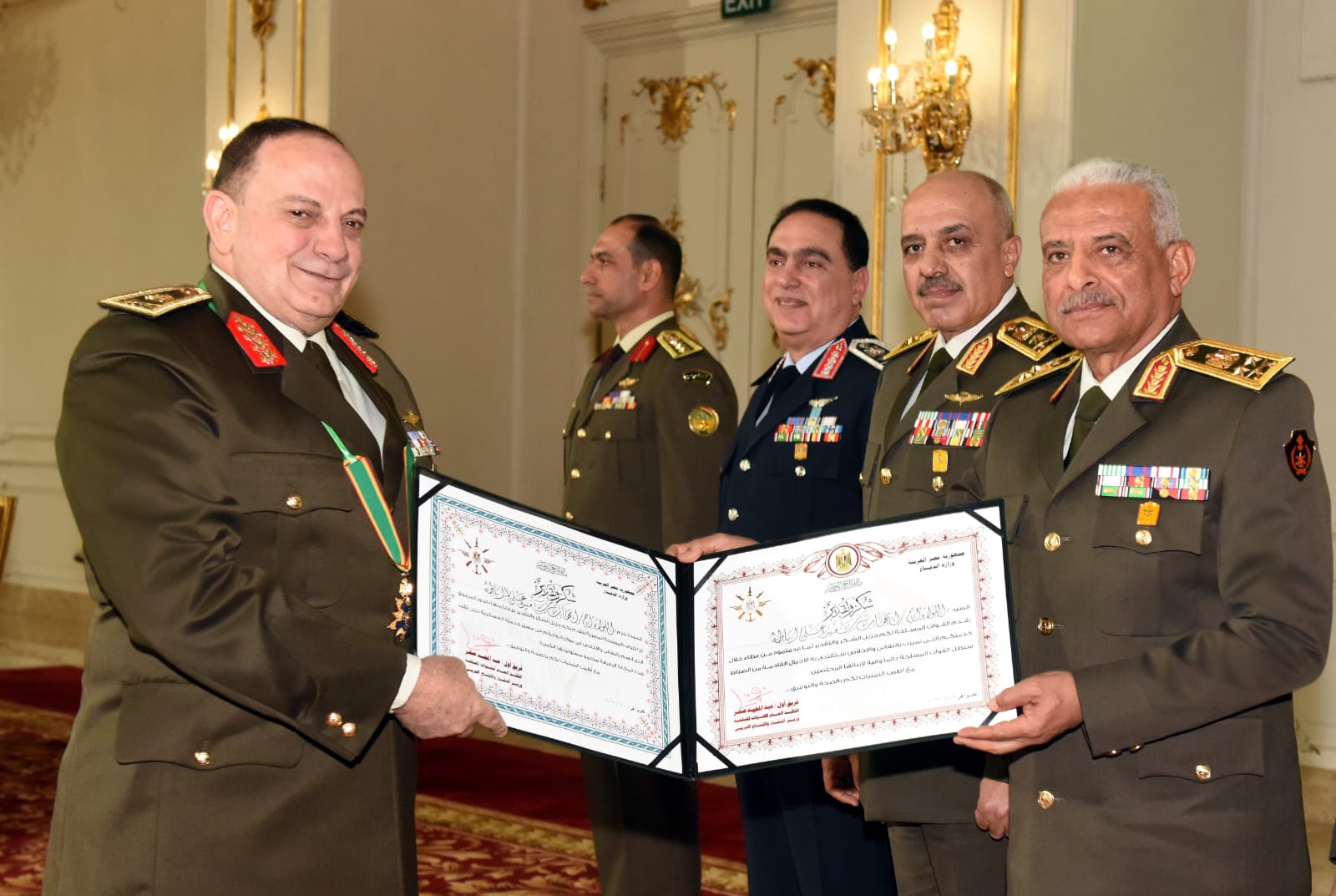 وقام الفريق أول عبد المجيد صقر بتقليد القادة المكرمين وسام الجمهورية من الطبقة الثانية، الذى صدق على منحه لهم الرئيس عبد الفتاح السيسى رئيس الجمهورية القائد الأعلى للقوات المسلحة تقديراً لما قدموه من جهود مخلصة طوال مدة خدمتهم بالقوات المسلحة.