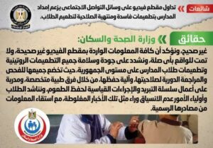 وأكدت وزارة الصحة، أنه لا صحة لإمداد المدارس بتطعيمات فاسدة ومنتهية الصلاحية لتطعيم الطلاب، وأن كافة المعلومات الواردة بمقطع الفيديو غير صحيحة، ولا تمت للواقع بأي صلة، مشددةً على جودة وسلامة جميع التطعيمات الروتينية وتطعيمات طلاب المدارس على مستوى الجمهورية، حيث تخضع جميعها للفحص والمراجعة الدورية لصلاحيتها، وآلية حفظها، من خلال فرق طبية متخصصة، ومدربة على أعمال سلسلة التبريد والإجراءات القياسية لحفظ الطعوم، مناشدة الطلاب وأولياء الأمور عدم الانسياق وراء مثل تلك الأخبار المغلوطة، مع استقاء المعلومات من مصادرها الرسمية.