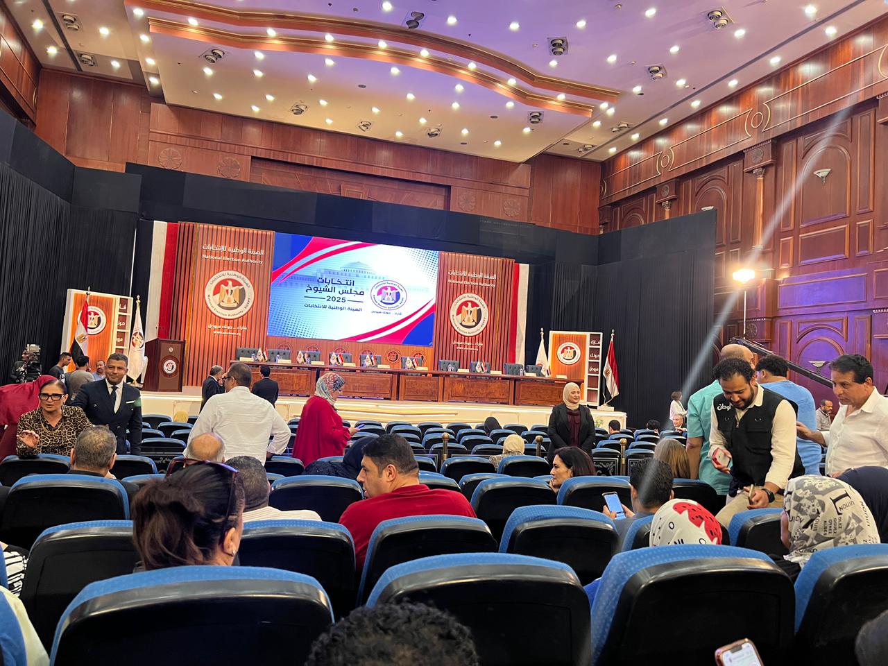 الاستعدادات الأولية لانطلاق مؤتمر الهيئة الوطنية للانتخابات لمناقشة التقرير النهائي الذي أعده مدير الجهاز التنفيذي للهيئة بشأن الإجراءات واللوجستيات الخاصة بانتخابات مجلس الشيوخ المقبلة.
