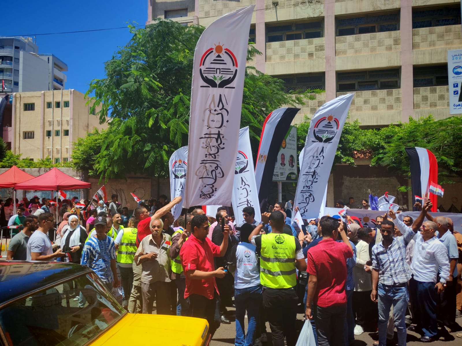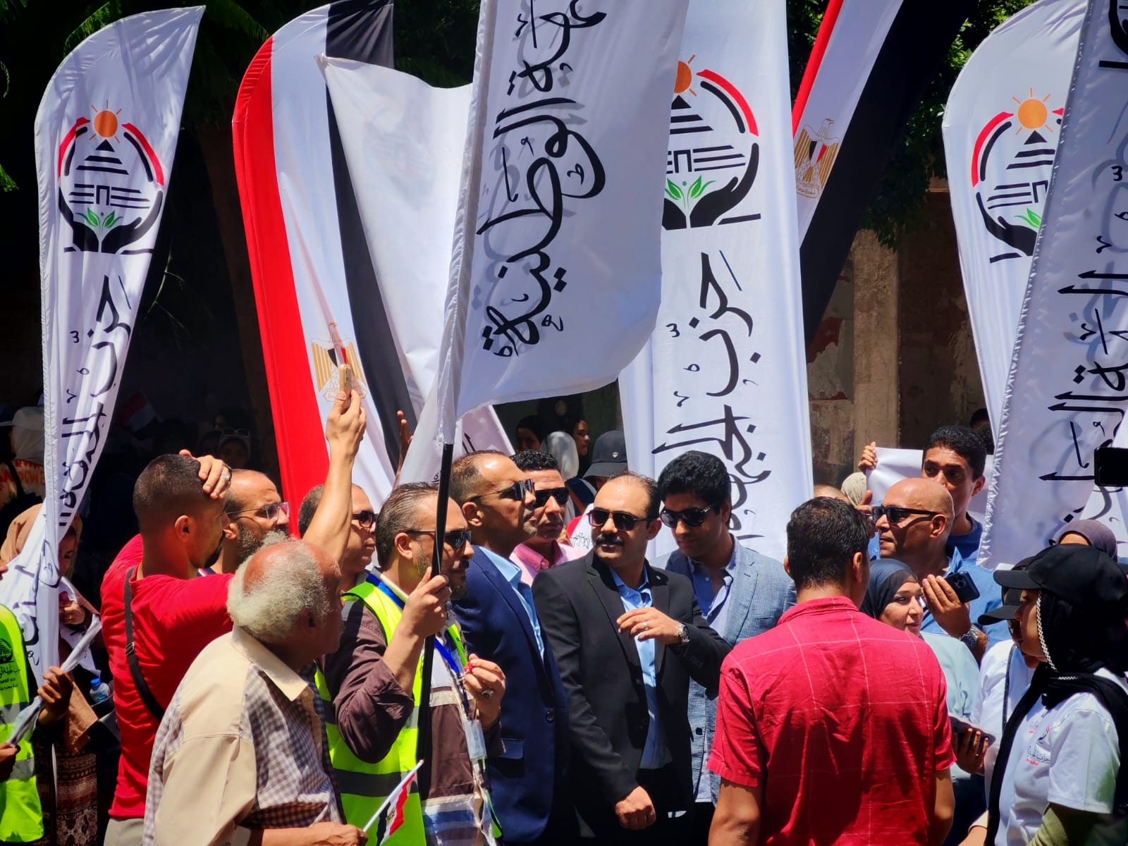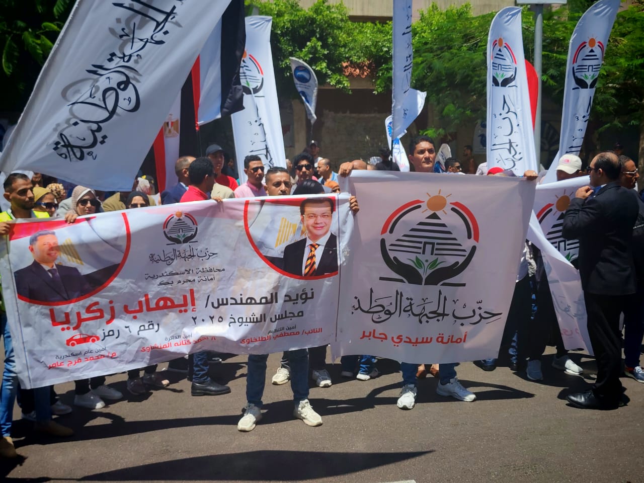 ورفعت الحشود أعلام مصر، وأعلام حزب الجبهة الوطنية، ولافتات مؤيدة للمرشح إيهاب زكريا، تعبيرًا عن دعمهم الكامل له وثقتهم في قدراته وكفاءته لتمثيل محافظة الإسكندرية تحت قبة مجلس الشيوخ.