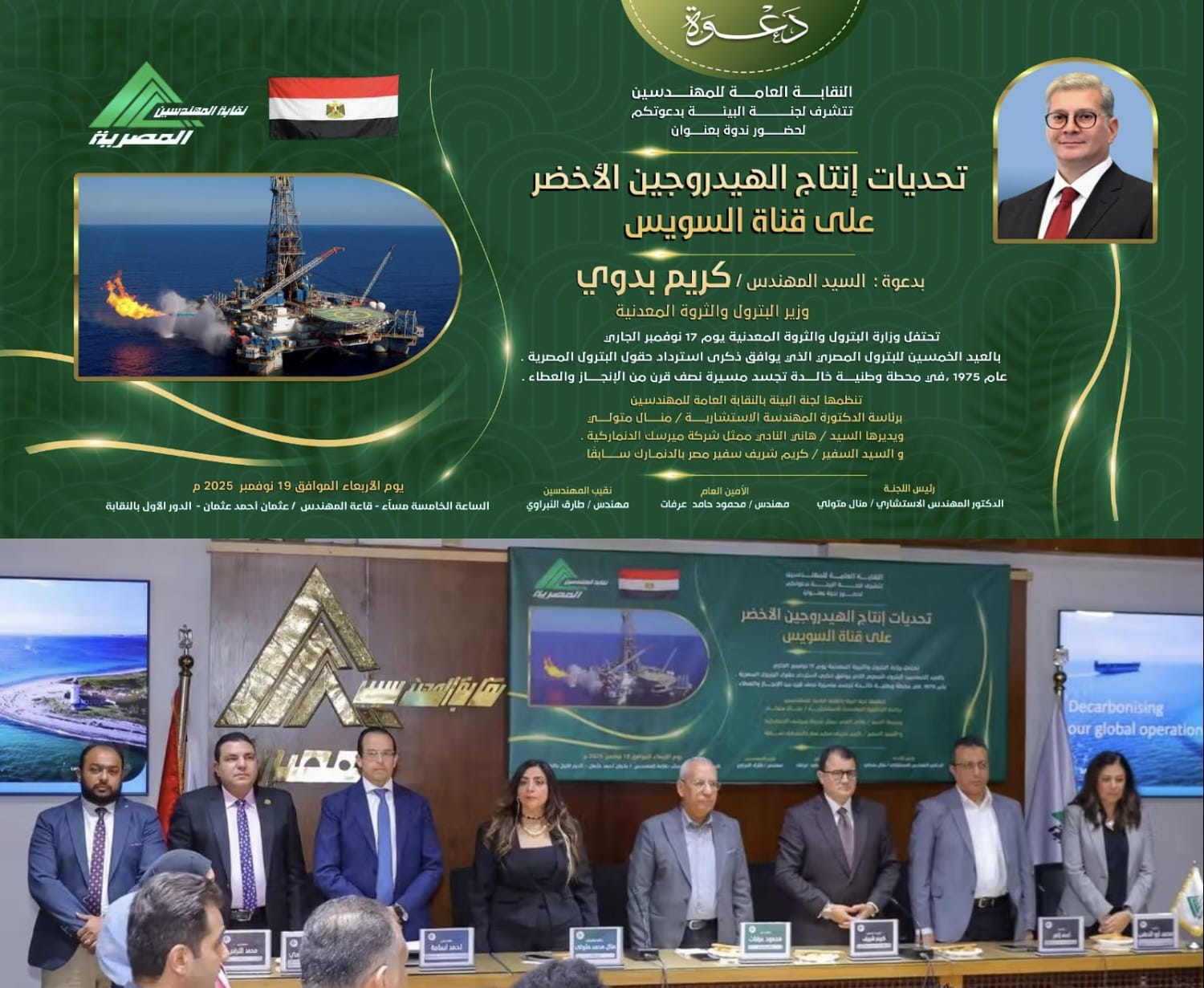 وشهدت الندوة حضور نقيب المهندسين طارق البنيراوي وعدد من قيادات النقابة، حيث جرى طرح رؤية مبدئية لآليات دعم توجه الدولة نحو مشروعات الهيدروجين الأخضر، والتي اعتُبرت خطوة تأسيسية لبدء مراحل أولية في هذا الملف داخل نطاق قناة السويس.