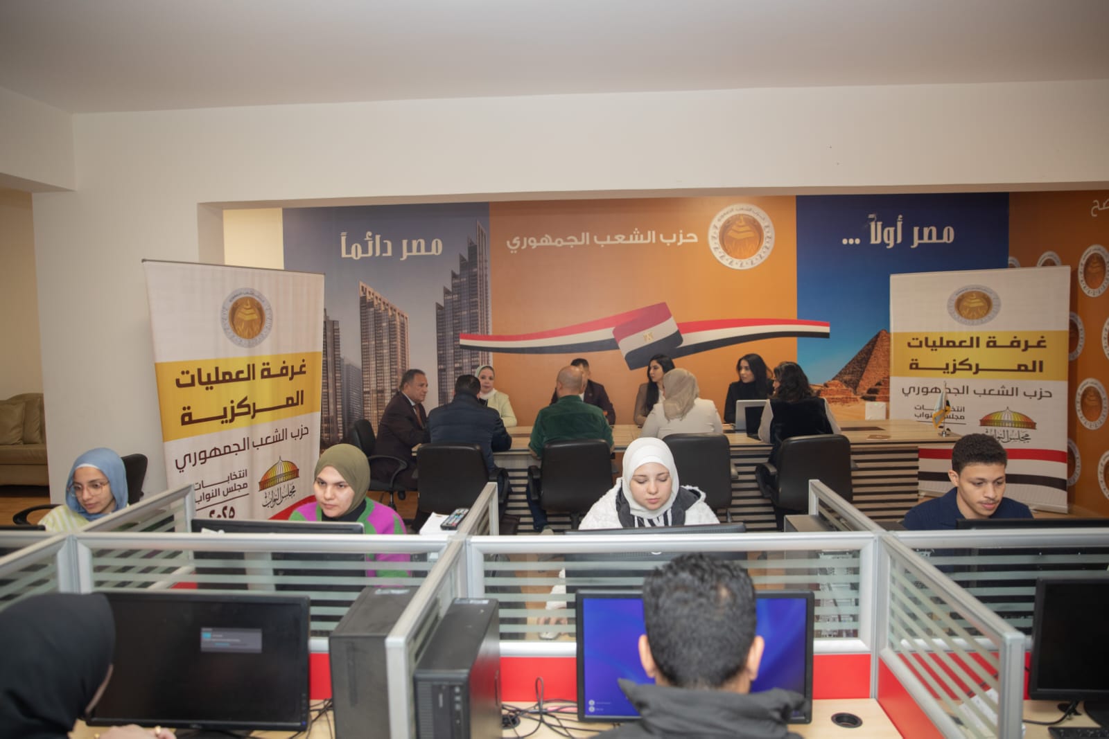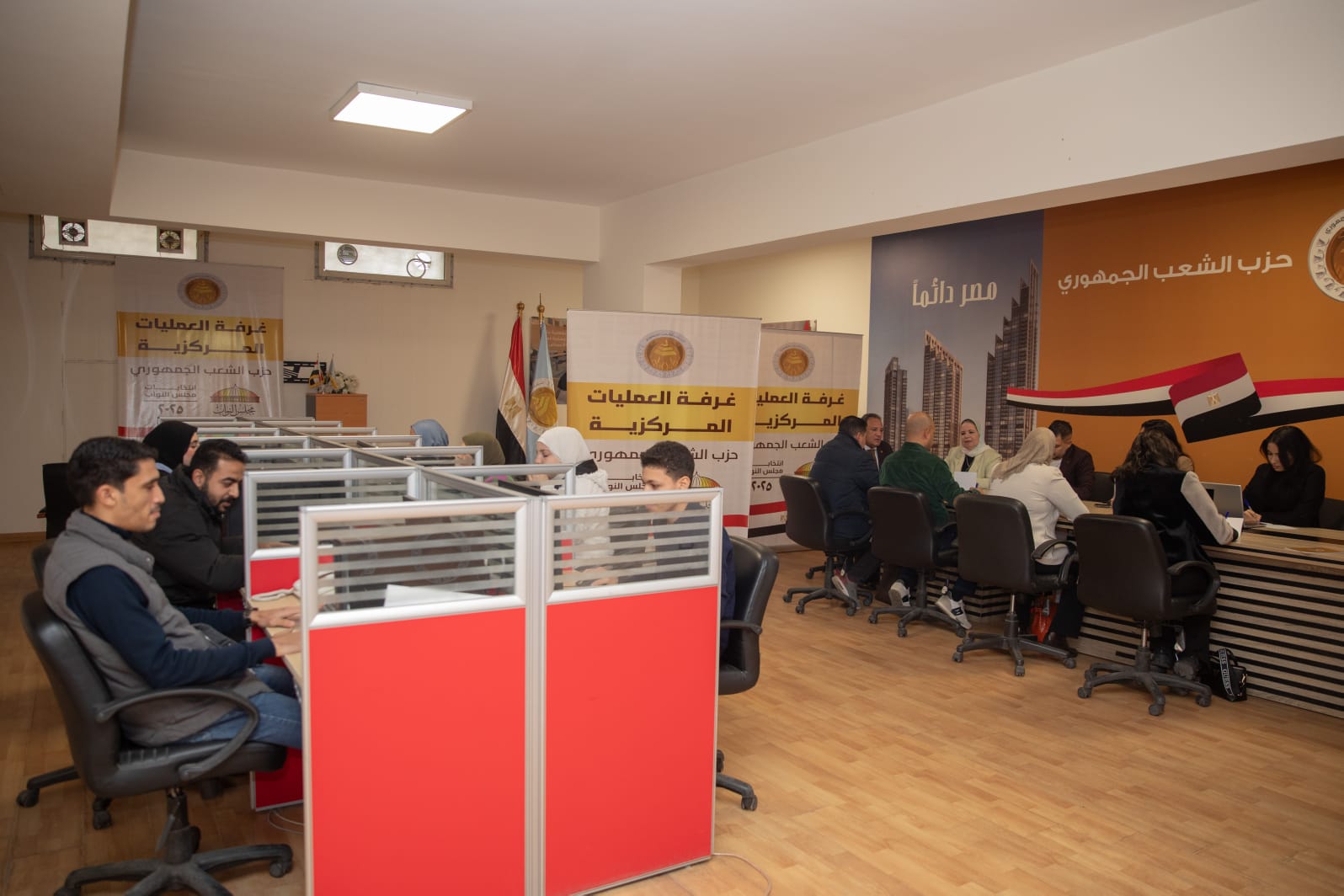 وشهدت غرفة العمليات حضور عدد من نواب الحزب وأمناء الأمانات النوعية، إلى جانب كوادر وشباب الأمانة المركزية، في إطار تنسيق متكامل لرصد مجريات العملية الانتخابية داخل اللجان المختلفة.