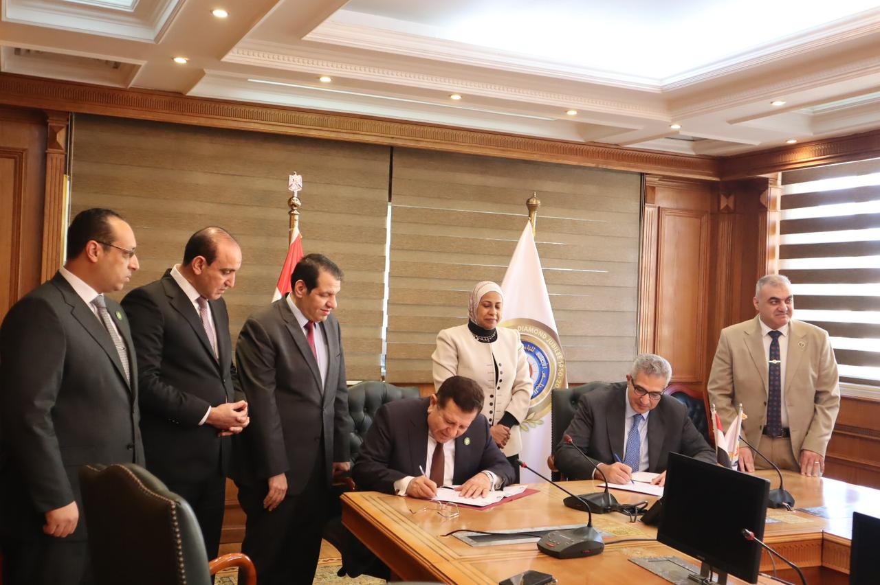 وقّع البروتوكول النائب المهندس يسري فهمي المغازي، أمين عام مجلس أمناء المحكمة العربية للتحكيم ورئيس وحدة خدمات الاستثمار، والدكتور مصطفى رفعت، أمين عام المجلس الأعلى للجامعات.