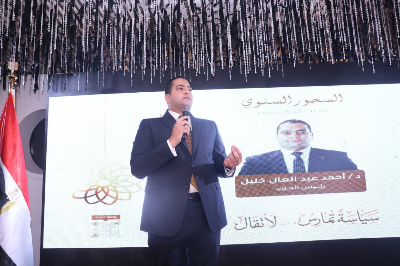 وأكد الحزب أن السحور السنوي يهدف إلى تعزيز قنوات التواصل والحوار المجتمعي بين مختلف القوى السياسية والمجتمعية، وترسيخ قيم التعاون والتقارب في أجواء شهر رمضان، بما يسهم في دعم مسارات العمل الوطني المشترك ومواجهة التحديات بروح من التفاهم والتكامل.