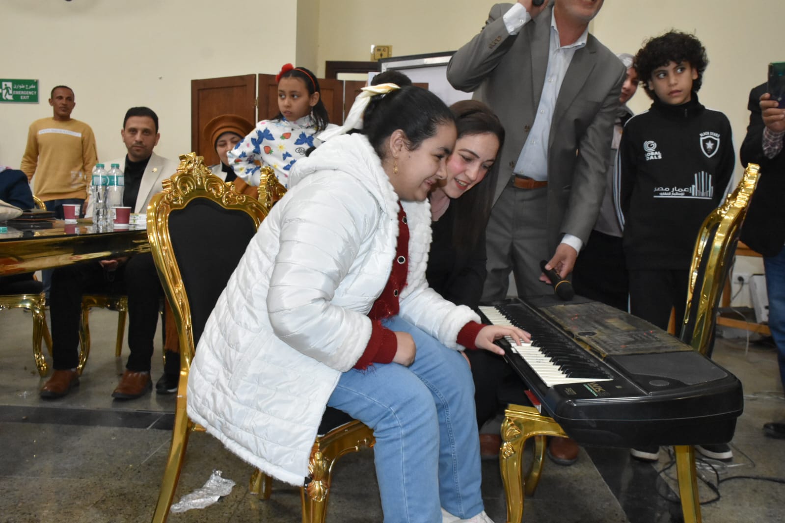 وشهدت الأمسية لحظة إنسانية مؤثرة بمشاركة الطفلة الموهوبة يوستينا نجاح، من ذوي الإعاقة المتعددة، التي أبدعت في العزف على آلة الأورج، في مشهد حاز إعجاب الحضور وأكد حرص الجامعة على دعم وتمكين المواهب دون تمييز.