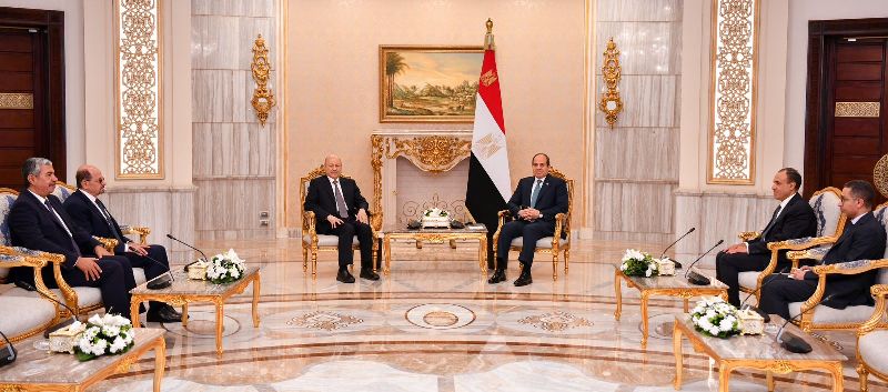 واستقبل الرئيس السيسي، الدكتور رشاد العليمي رئيس مجلس القيادة الرئاسي اليمني، وأكدا عمق ومتانة العلاقات التاريخية بين مصر واليمن، وشدد الرئيس على موقف مصر المستمر الداعم لوحدة واستقرار اليمن، وتأييد الجهود الدولية الرامية للتوصل لحل سياسي شامل للأزمة باليمن.