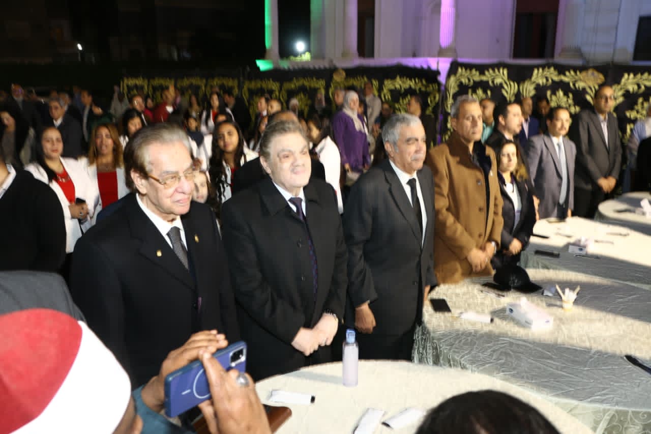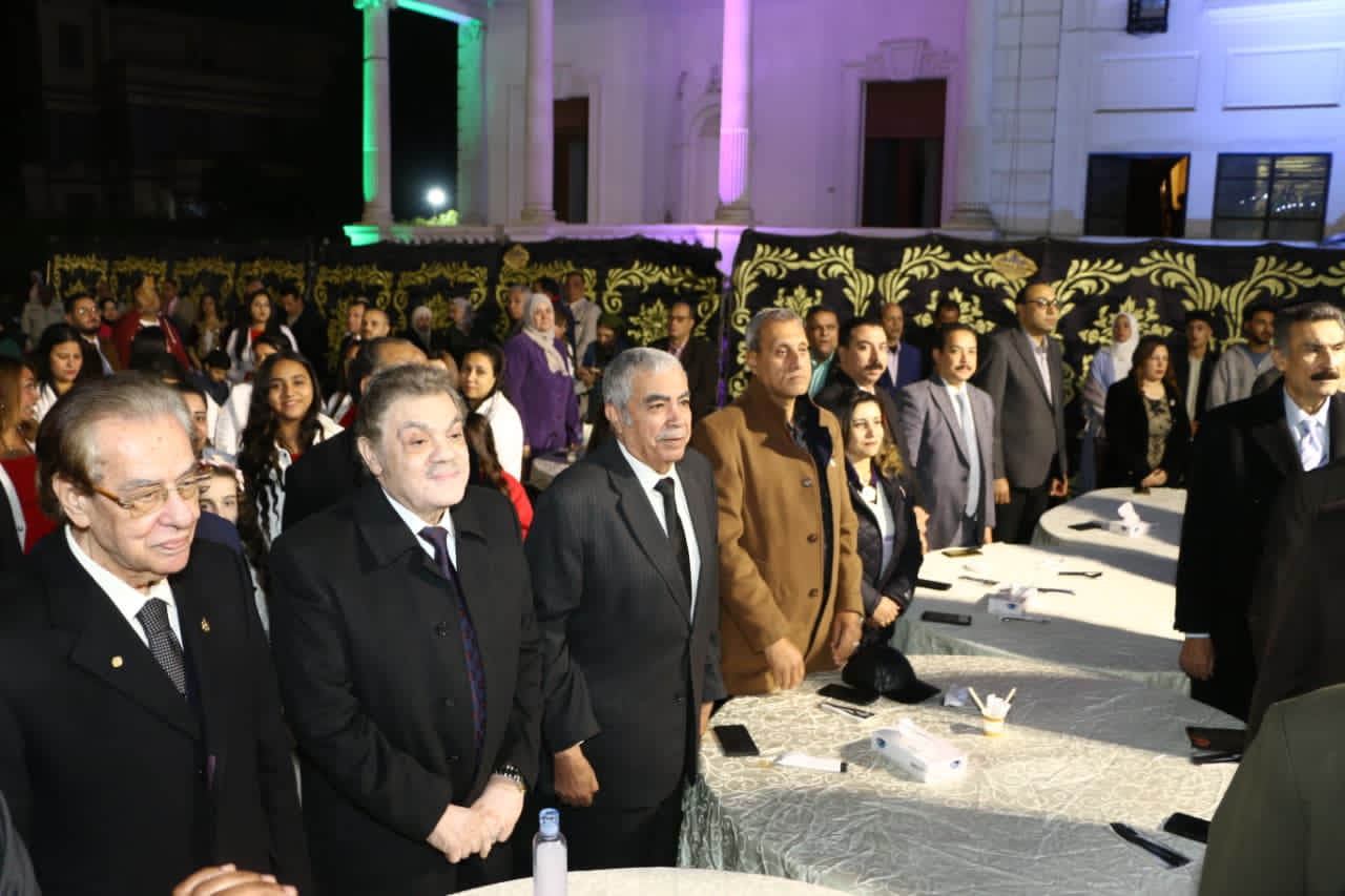 وبدأت الأمسية بالسلام الجمهوري ثم تلاوة آيات من الذكر الحكيم وسط أجواء من الروحانيات، كما حضر الشيخ الدكتور إسماعيل إمام مسئول الدعوة الإلكترونية بوزارة الأوقاف ممثلاً عن وزارة الأوقاف، والقمص كيرلس موريس كاهن ماري مينا والبابا كيرلس مدينة السلام، والمستشار عدلي حسين محافظ القليوبية الأسبق، واللواء طارق المهدي محافظ البحر الأحمر الأسبق.