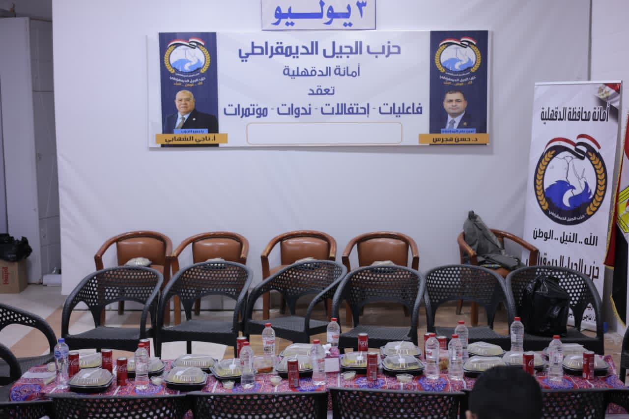 بتوجيهات الأستاذ ناجي الشهابي رئيس حزب الجيل الديمقراطي وعضو مجلس الشيوخ المصري، وبقيادة الدكتور حسن هجرس، مساعد رئيس الحزب وأمين عام الحزب بمحافظة الدقهلية، نظمت أمانة الحزب بالدقهلية حفل الإفطار السنوي للحزب، والذي تضمن صالونا سياسيا بعنوان “انتخابات المجالس الشعبية المحلية ومستقبل قانون الادارة المحلية في مصر”، وذلك بحضور قيادات وأعضاء الحزب بمحافظة الدقهلية.