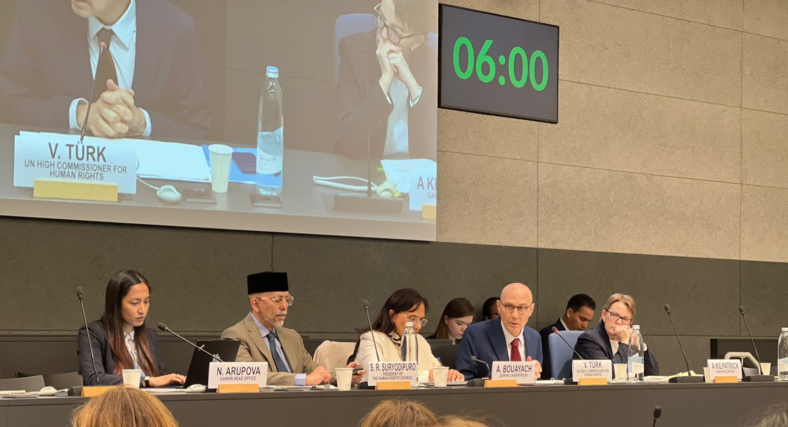 في إطار مشاركته في الاجتماعات السنوية للتحالف العالمي للمؤسسات الوطنية لحقوق الإنسان، المنعقدة في الفترة بين ٣٠ مارس ١ ابريل، بمقر الأمم المتحدة في جنيف، شارك الدكتور أحمد إيهاب جمال الدين، رئيس المجلس القومى لحقوق الانسان، فى مؤتمر دولي حول دور المؤسسات الوطنية في حماية وتعزيز حقوق الإنسان في الفضاء الرقمي.