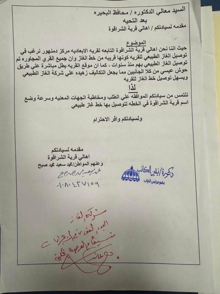 وأكدت النائبة، في تصريحات لها، أنها تقدمت بطلب إلى الدكتورة جاكلين عازر، محافظ البحيرة، بشأن إدخال خدمة الغاز الطبيعي للقرية، مشيرة إلى أنه تم الاستجابة للطلب والتوجيه بالبدء الفوري في تنفيذ الأعمال من خلال شركة “ناتجاس”، مع التنسيق الكامل مع الوحدة المحلية لتسريع وتيرة التنفيذ.