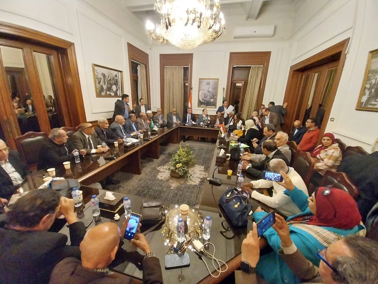 حضر اللقاء النائب الوفدى عباس حزين عضو مجلس الشيوخ، والنائبة الوفديه ،نشوى الشريف عضو مجلس النواب ،والعميد محمد سمير مساعد رئيس الحزب،واللواء مصطفى زكريا مساعد رئيس الحزب لشئون المتابعه، وحمادة بكر عضو الهيئة العليا، وقيادات الوفد يوسف المصرى أمين صندوق إتحاد أصحاب المعاشات ،والنائب الوفدى الأسبق محمد جاد ،وطارق مبروك