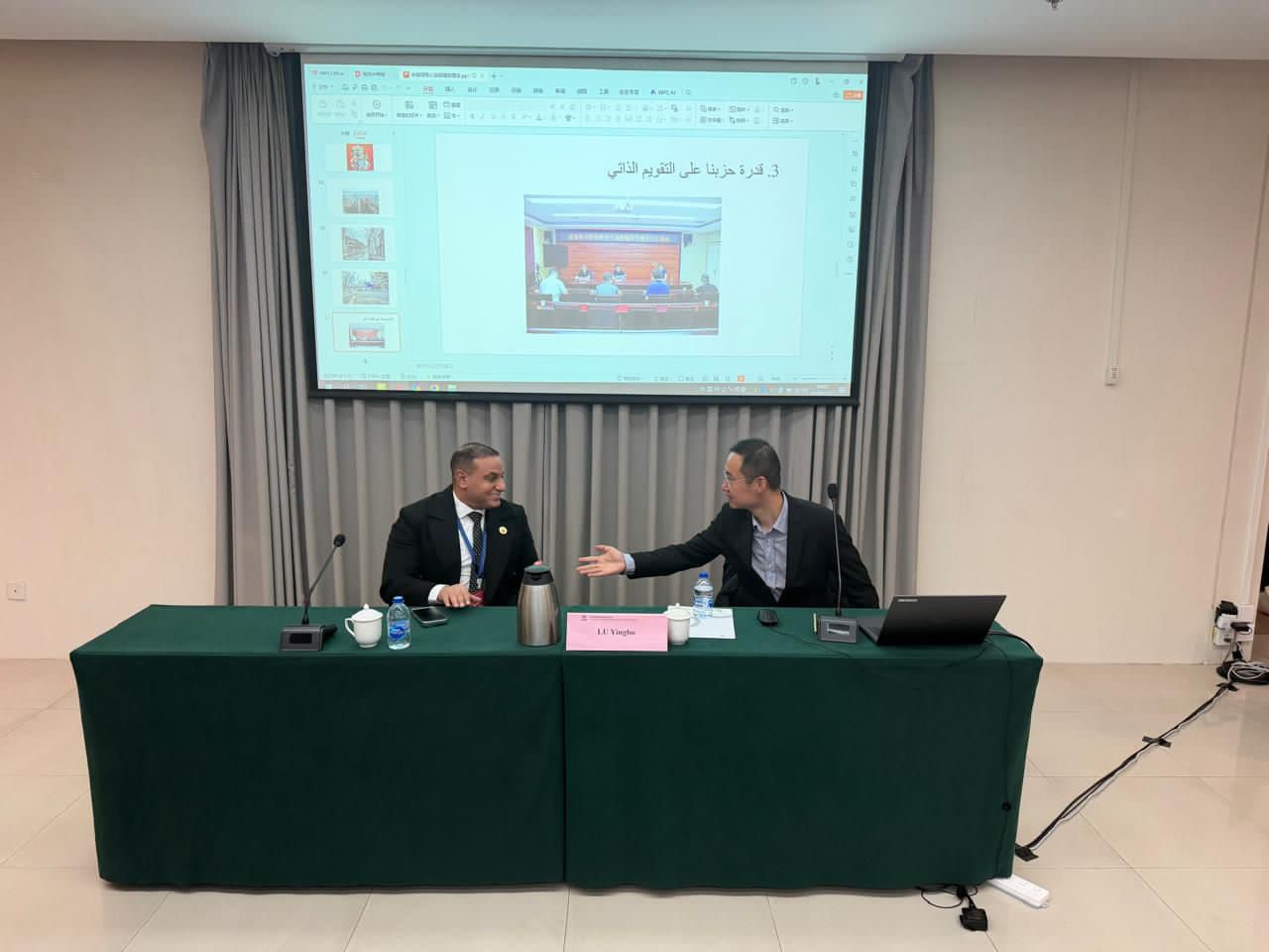 ونوه إلى وجود تفاعل ونشاط ملحوظ لوفد الحزب المشارك بالجلسات و الفعاليات التي يتم عقدها خلال الملتقي بالعاصمة الصينية بكين لما تمثله هذه الفعاليات من اهمية .