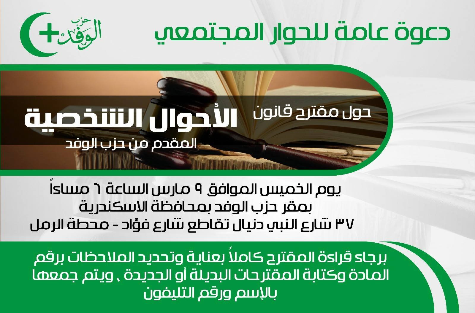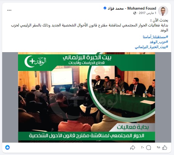 – نُهدى حزب العدل مشروع قانون الأحوال الشخصية الوفدى تقديرًا للنائب الدكتور محمد فؤاد
