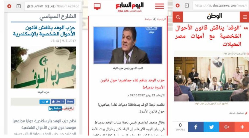 – الوفد أعد مشروع قانون الأحوال الشخصية عام ٢٠١٥ بمعرفة بيت الخبرة الوفدى بعدد ١٠٠ جلسة استماع وزيارات شملت ١٨ محافظة فى مقرات الوفد