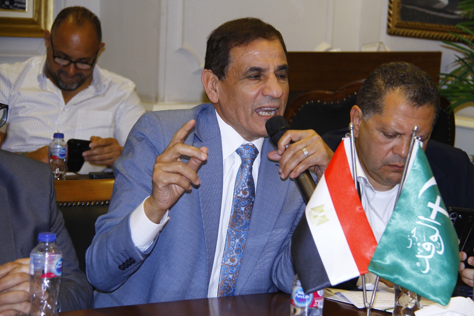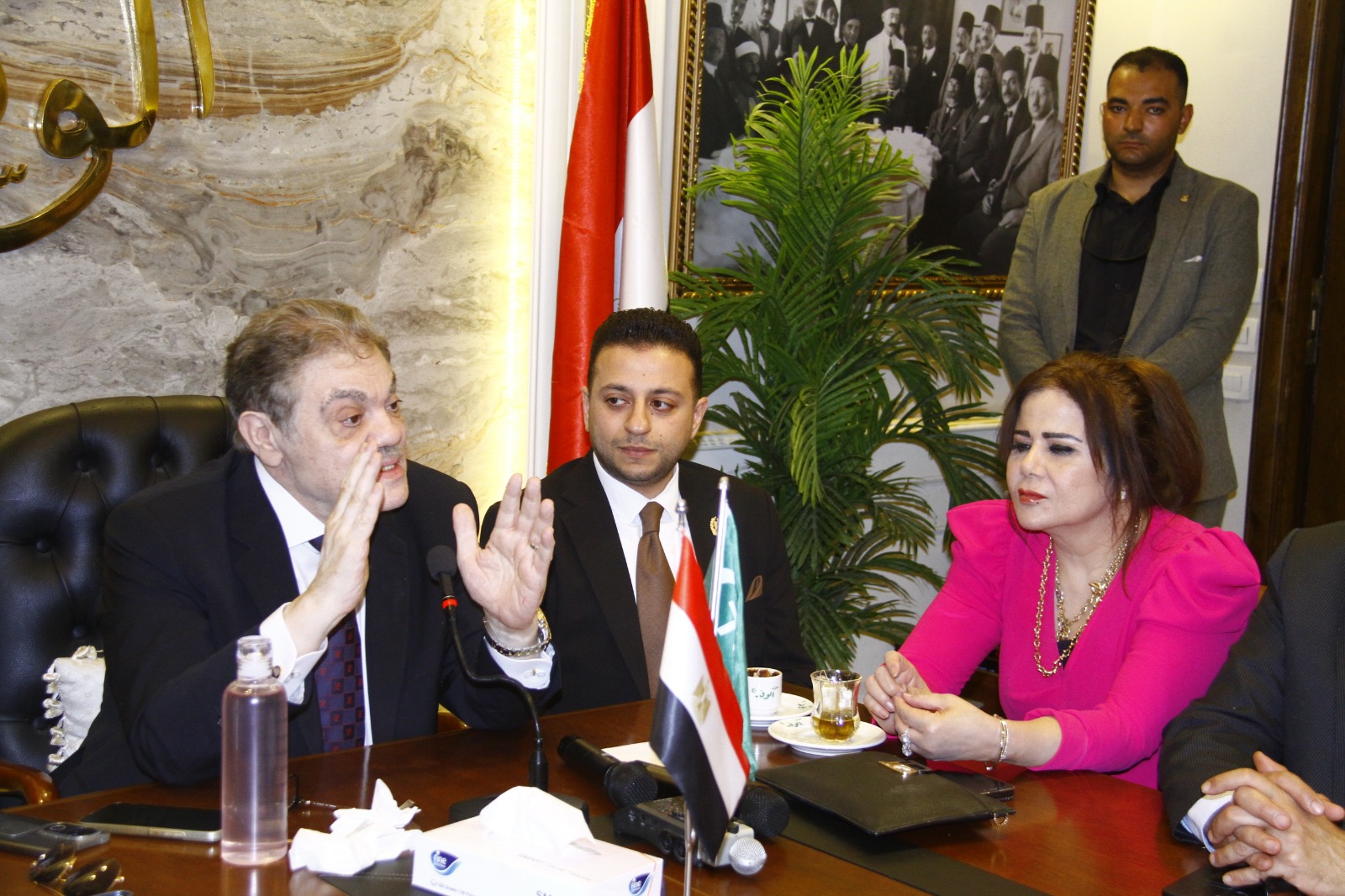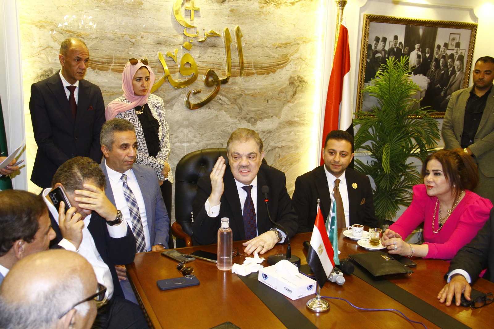حضر اللقاء محمد عبدالعليم داود, رئيس الهيئة البرلمانية لحزب الوفد بمجلس النواب, والنائب عباس حزين عضو مجلس الشيوخ, والكاتب الصحفى كاظم فاضل رئيس تحرير جريدة الوفد وعضو المكتب التنفيذى للحزب والنائبة الدكتورة أمل رمزى عضو لجنة التطوير, والعميد محمد سمير مساعد رئيس الحزب والكاتب الصحفى حمادة بكر مدير المركز الإعلامى وعضو الهيئة العليا للحزب، والدكتور محمد الصقار المستشار بلجنة التحول الرقمى بالحزب .