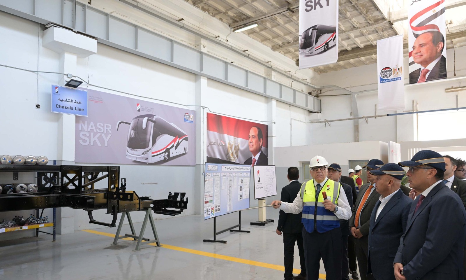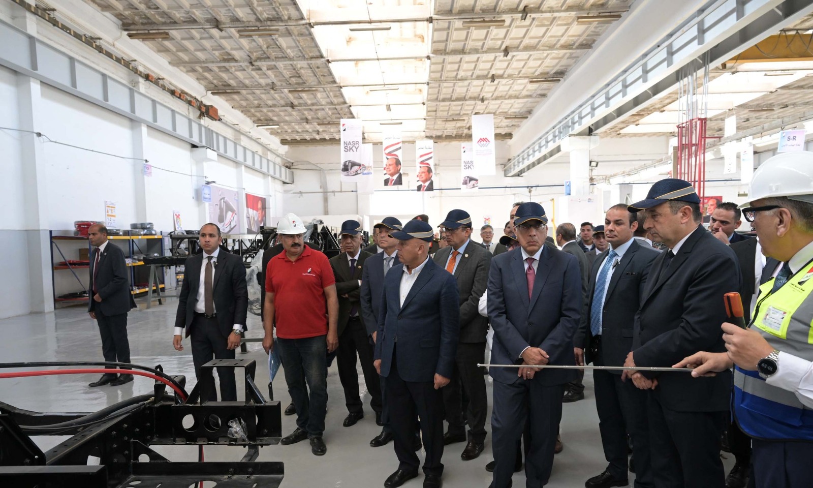 وعقب حضوره فعاليات الاحتفالية، قام رئيس الوزراء بجولة فى أرجاء مصنع الأتوبيسات، لتفقد ما تم من أعمال تطوير، كما تابع المراحل والعمليات الإنتاجية المختلفة وصولا إلى المنتج النهائي، مستمعاً إلى شرح تفصيلي حول مراحل الانتاج، وما يتم على المنتج من عمليات لاختبارات الجودة والكفاءة وفقا للمعايير العالمية المطبقة فى هذا الشأن، وذلك خلال مراحل التصنيع المختلفة، وتمت الإشارة إلى أن الطاقة الإنتاجية الحالية للمصنع تصل إلى 300 أتوبيس سنويا، ومن المستهدف أن تصل إلى 1500 أتوبيس سنويا بحلول عام 2027، وذلك بنسبة مكون محلي تصل إلى 50% في مرحلتها الأولى على أن تصل لاحقا إلى 60-70%، وتمت الاشارة خلال الشرح، إلى انه يتم التصدير إلى عدد من الدول العربية.