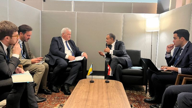 كما أكد وزير الخارجية، موقف مصر من الأزمة الأوكرانية، والمرتكز على احترام قواعد القانون الدولي ومبادئ وأهداف ميثاق الأمم المتحدة، مسلطًا الضوء على الرؤية المصرية بأهمية إنهاء الأزمة من خلال التفاوض وبشكل يحقق مصالح الطرفين، مبرزًا دور مصر في المبادرات ذات الصلة، ومنها مبادرة القادة الأفارقة، ومجموعة الاتصال العربية الخاصة بالأزمة، والمشاركة في الاجتماع الوزاري للمبادرة الصينية البرازيلية على هامش اجتماعات الجمعية العامة للأمم المتحدة.
