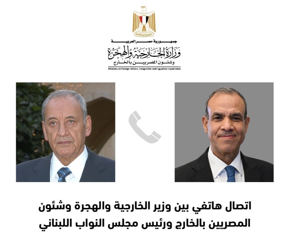 أجرى د. بدر عبد العاطي وزير الخارجية والهجرة اتصالين هاتفيين مساء اليوم ٢٧ نوفمبر مع السيد نبيه بري، رئيس مجلس النواب اللبناني، والسيد نجيب ميقاتي، رئيس الحكومة اللبنانية.