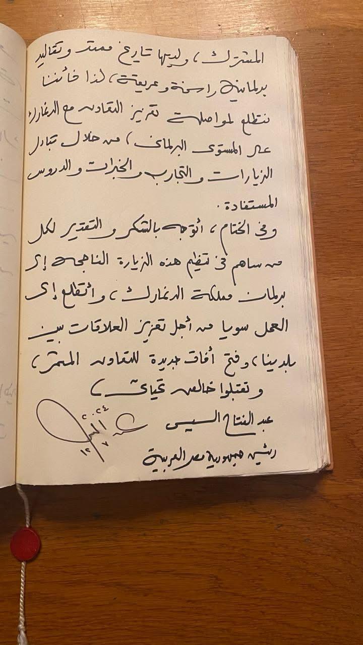 أعرب الرئيس عبدالفتاح السيسي، عن سعادته بزيارة البرلمان الدنماركي ولقاء رئيس البرلمان.